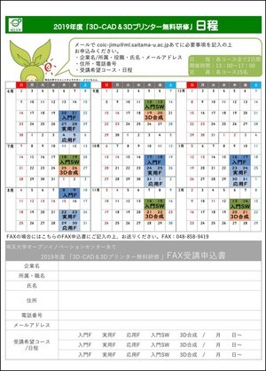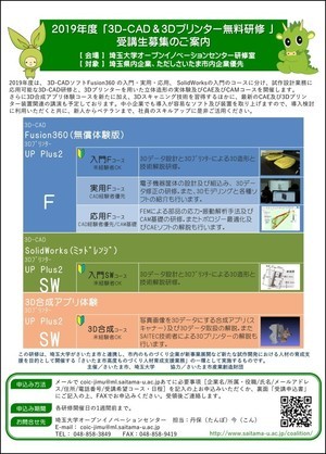 埼玉大学では、さいたま市と連携し、市内のものづくり企業が新事業展開など新たな試作開発における人材の育成支援を目的として「3D-CAD&3Dプリンター無料研修」を開催します。