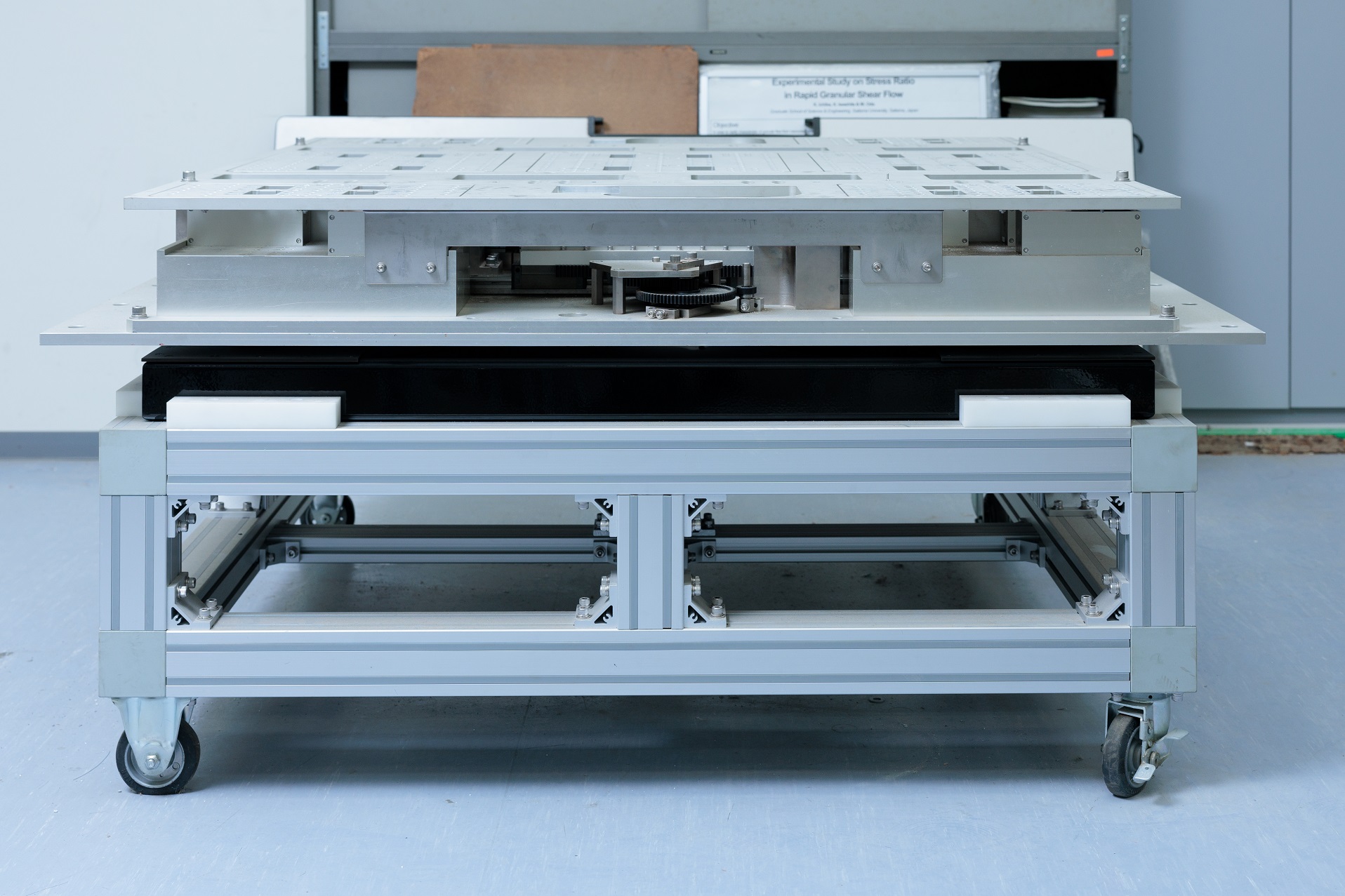一般的な免震装置は、床に接する台とサーバーが載る台からなる2層構造になっていて、サーバーが載っている台が柔軟にスライドすることで揺れを吸収する仕組みになっています。