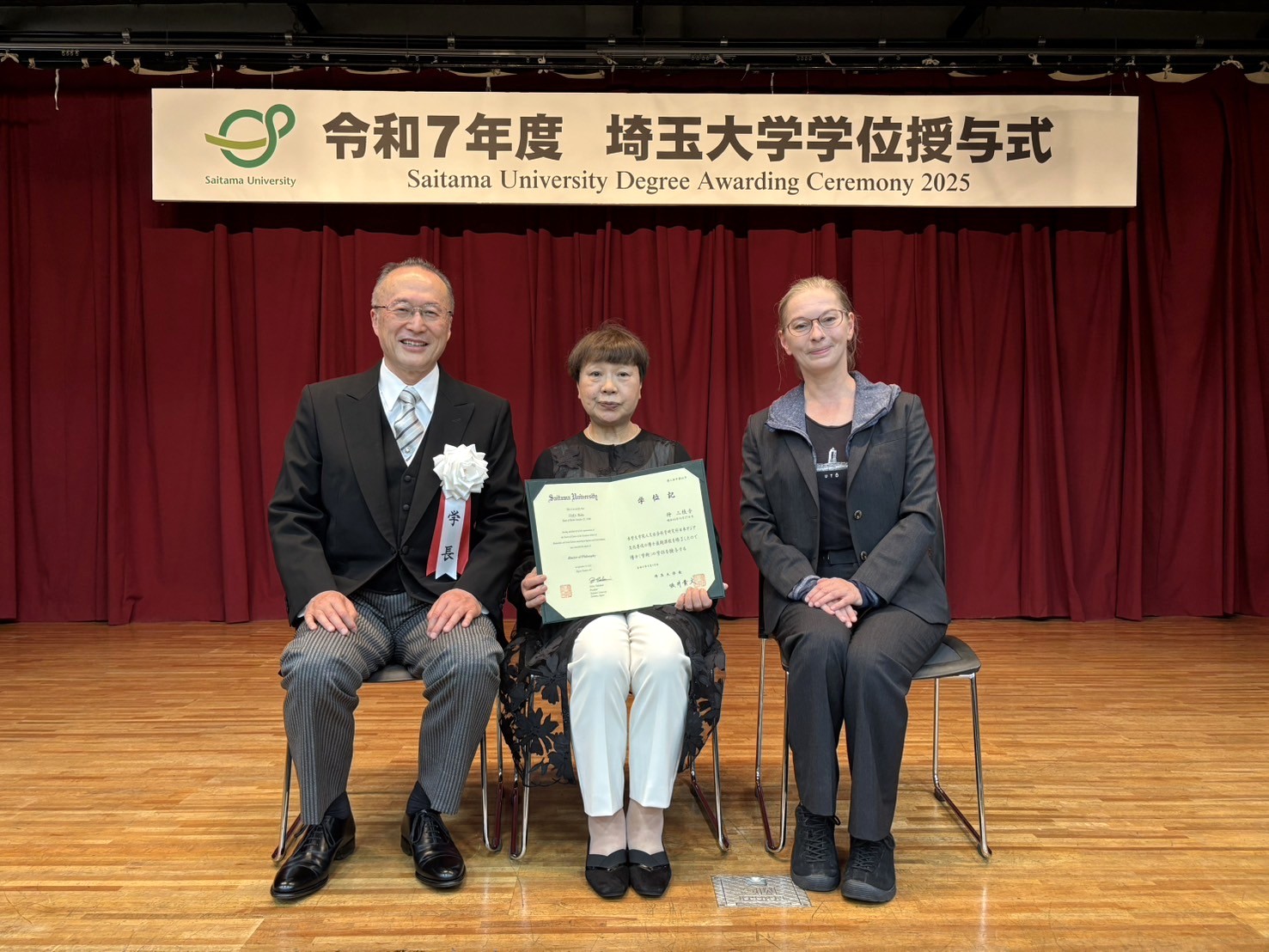 76歳にして本学大学院 人文社会科学研究科の博士後期課程を修了し、博士号を取得した仲三枝子さん。広告代理店での定年を間近に控えるなか、若い頃に叶えられなかった「学びたい」という思いを胸に大学へ入学し、その後も大学院で研究に打ち込んだ経歴の持ち主です。今回は、仲さんに研究テーマとの出会いや埼玉大学で得たものについて伺いました。