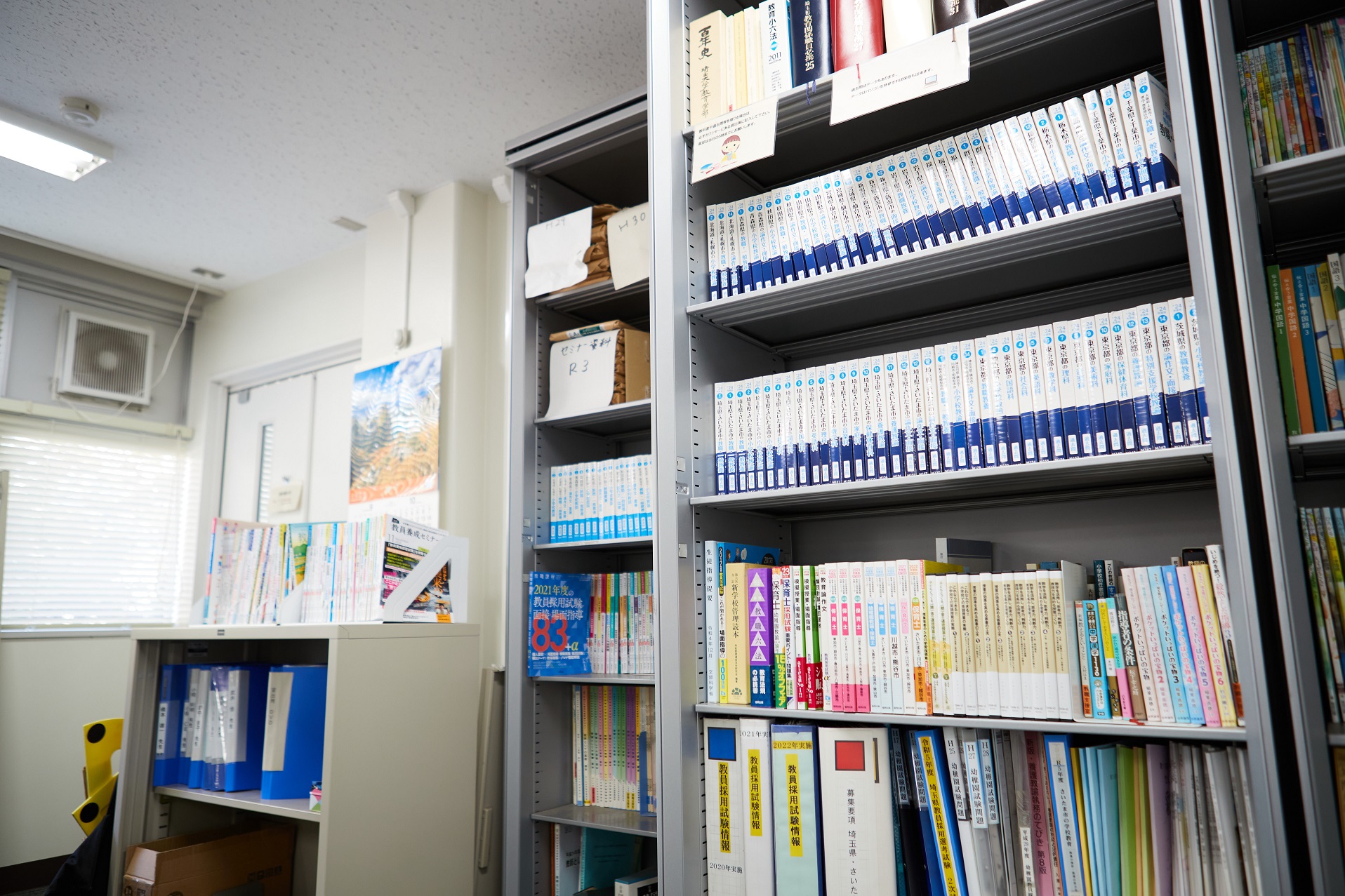埼玉大学教育学部では、教員を目指す学生に対する支援のあり方について、教員たちが議論しながら、方針を定める「教職支援委員会」を組織しています。この委員会と一体的に活動しているのが教職支援室です。学生たちが教員採用試験を突破するための様々な支援活動を行っています。
