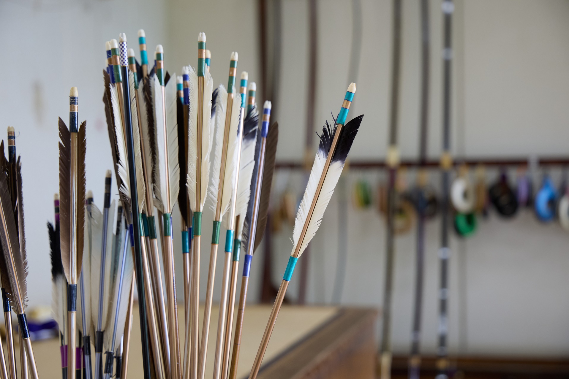 弓道の弓にはスコープなどの照準器がありません。矢を放つ際には「射法八節(しゃほうはっせつ)」と呼ばれる一連の基本動作に従います。道具も動作もシンプルなぶん、少しの体のブレや心の揺れで狙いが外れてしまうことも。心と体の両方が試される点が弓道の難しさであり、面白さでもあります。
