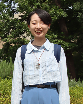 この度は貴奨学金を授与いただき、誠に光栄に存じます。寄附者様をはじめ、関係者の皆様に心より感謝申し上げます。かねてより大学院での研究活動への進学を志しておりましたが、この度の温かいご支援は、私の夢の実現に向けた大きな後押しとなります。この度の温かいご支援を無駄にすることないよう、勉学に励み、将来社会に貢献できる人材となれるよう、日々精進してまいります。大学院では、これまでに学んだ知識をさらに深め、学部時代より行っている研究活動に引き続き取り組んでいく予定です。また、研究活動に励む傍ら、サークル活動やインターンシップにも積極的に参加し、多様な価値観に触れ、視野を広げることにも努めてまいりたいと考えております。これらの経験を通して、社会で活躍するための実践的な能力を磨き、人間性を豊かに育んでいきたいと存じます。今後とも期待に応えられるよう、努力してまいります。改めまして、心より感謝申し上げます。