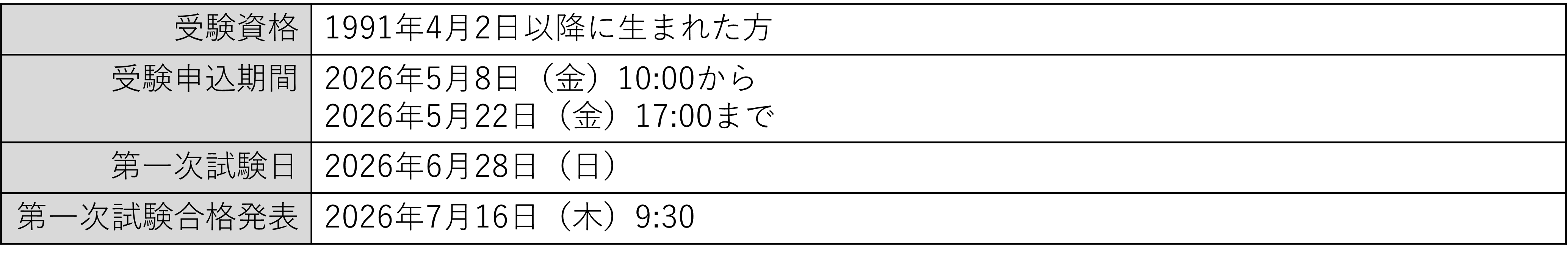 第二次試験スケジュール
