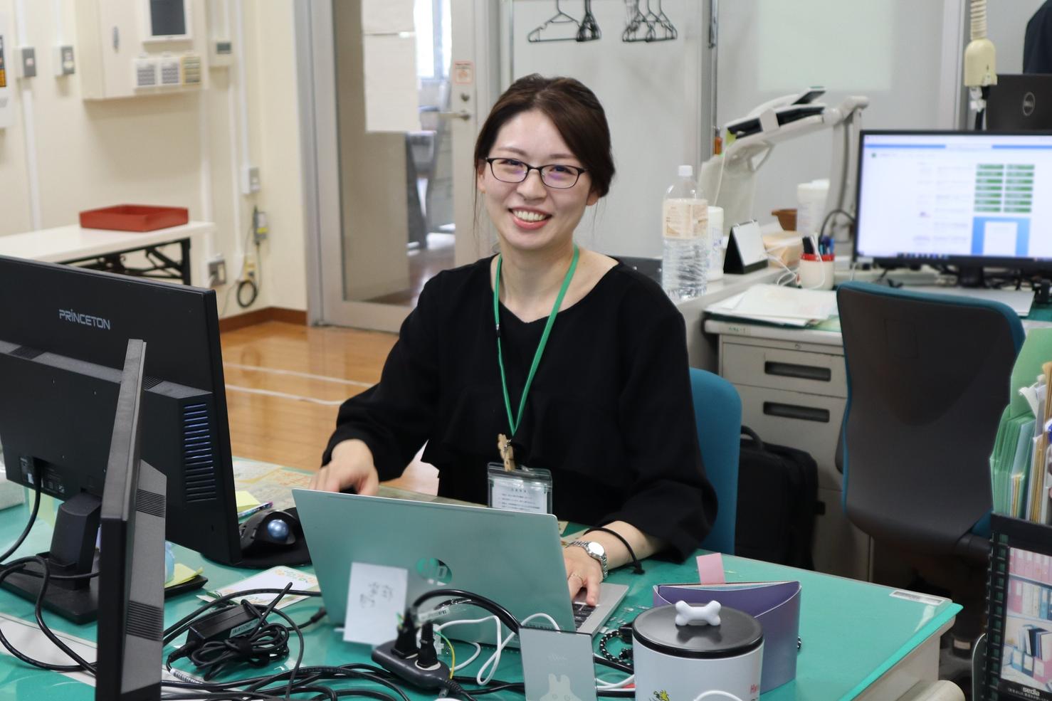 学務部教育企画課総務担当係で働いています。総務担当係ということで、建物の管理や、教員の荷物の受け取り、各教室で使う備品の購入など業務は多岐にわたります。 私個人としては非常勤講師の委嘱手続や、教員の勤務状況の確認を行っています。