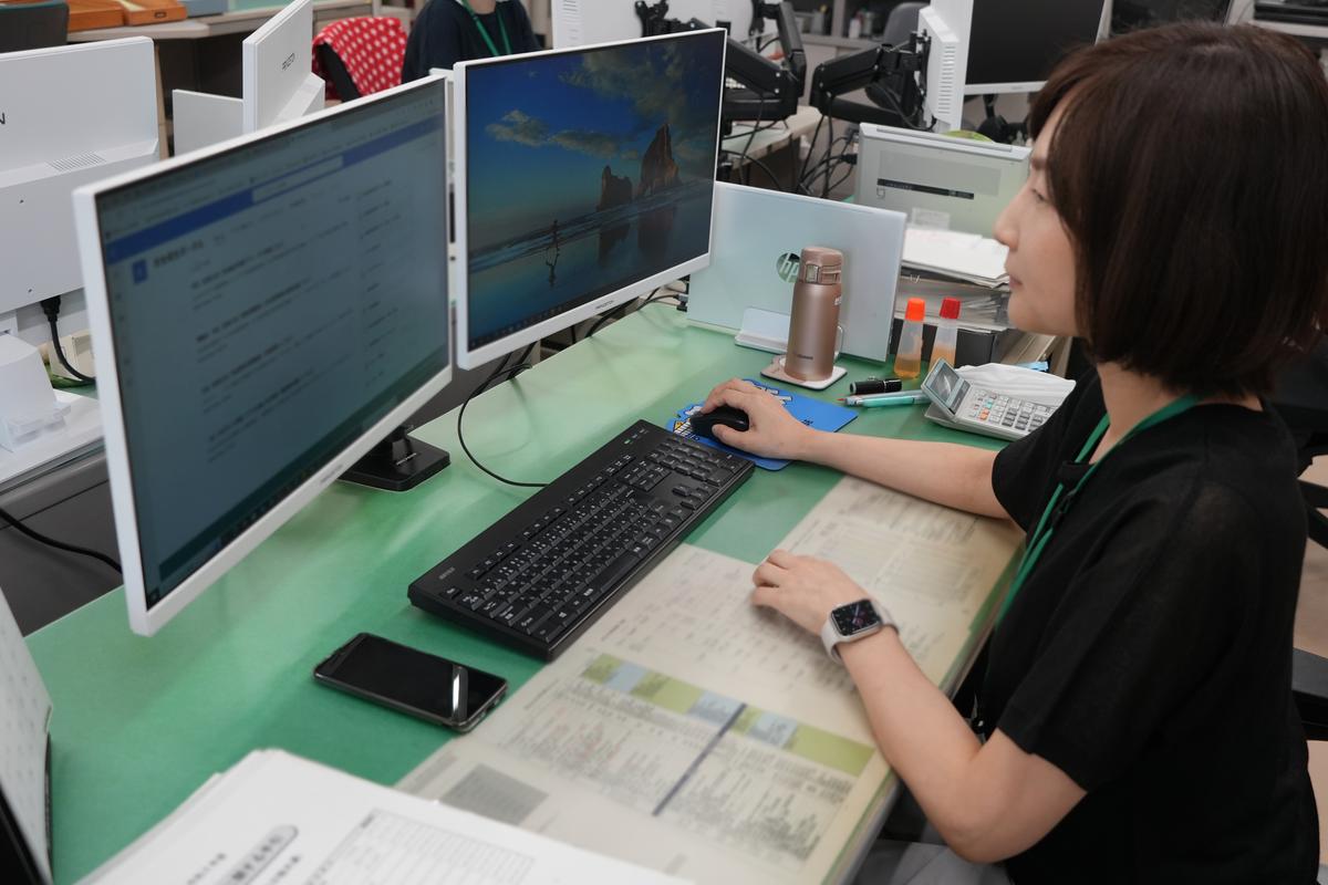 経理課の出納担当に所属しています。日々発生する入出金の内容をシステム上や書類上で把握し、不明な入出金などがないよう管理しています。