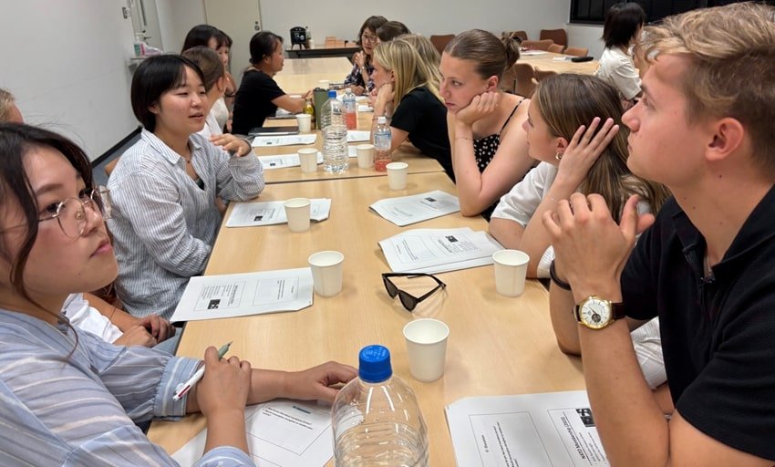 続くワークショップ “Navigating a Turbulent World: Finland and Japan’s Security Strategies Amid U.S.-China-Russia Geopolitical Tensions” では、草野大希教授の講義をもとに、緊張する国際情勢を背景としたフィンランドと日本の安全保障政策の転換について活発な議論が交わされました。NATO(北大西洋条約機構)加盟や対人地雷禁止条約からの離脱を決めたフィンランド、大幅な防衛費増額や「反撃能力」と呼ばれる長射程ミサイル配備を進める日本。それぞれの「論争的」政策について多角的な意見交換が行われました。フィンランドには徴兵制があり、ちょうど従軍を終えた学生の体験談に参加者が熱心に耳を傾ける場面も見られました。