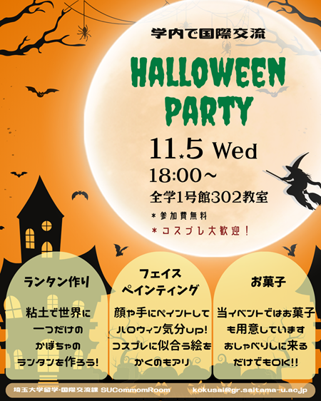 SUCRでは11月5日(水)にハロウィンパーティーを開催します!!