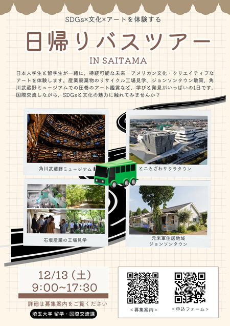 SDGs×文化×アートを体験する日帰りバスツアー in 埼玉/SDGs x Culture x Art Experience Day Trip Bus Tour in Saitama