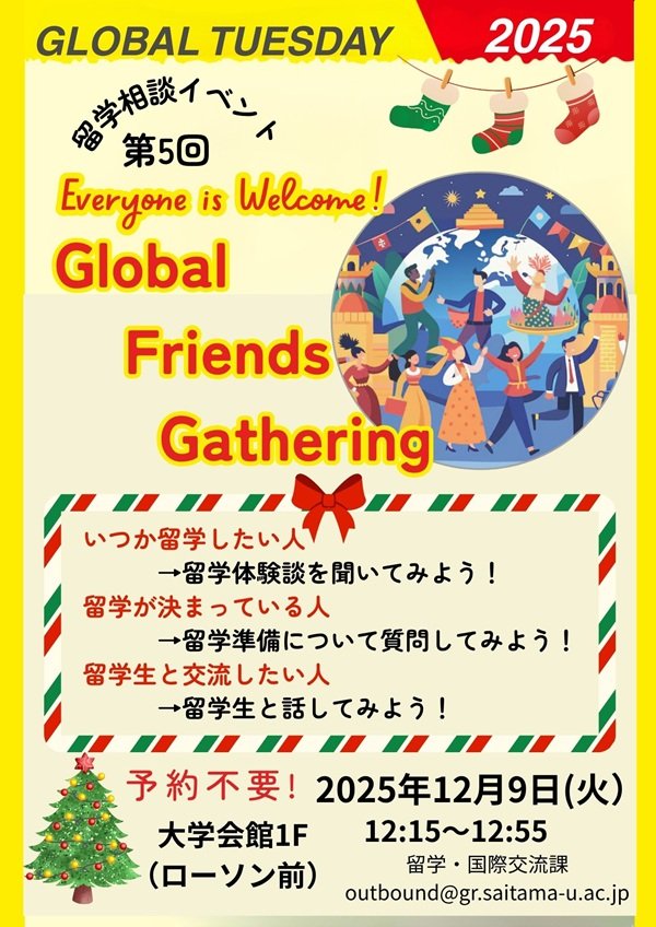 第5回目は、「Global Friends Gathering」をテーマに、学生交流イベントを開催します。