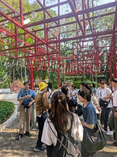 風鈴の下に集まると、どこからともなく風が吹き、きれいな音が響きました。約400年の時を越えて、この場所で日タイの学生の交流を祝福してくれているのかもしれません。