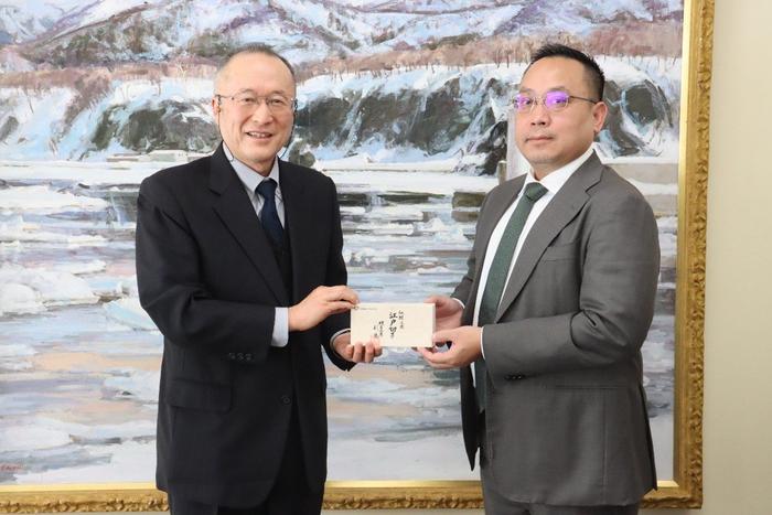 1月14日(水)、カンボジア経済財政省から、エット・ビネル副長官、ウム・ユッティー総務・財務・モニタリング評価部長、ンガウ・ペンホイ ナショナル・アドバイザー兼王立プノンペン大学准教授、スロン・ラタ上席専門官、コン・リアケナー カンダル州経済財政局長が来学され、坂井 貴文学長を表敬訪問しました。