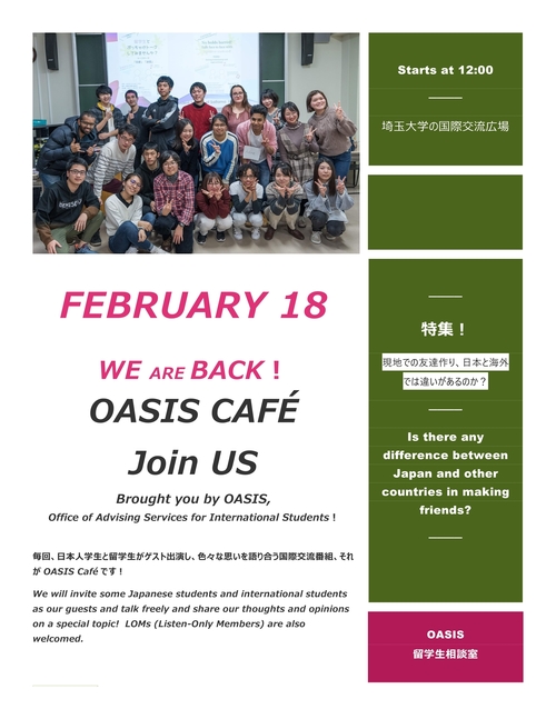 留学生の皆さんへ 【2月18日(木)12:00スタート】OASIS CAFÉ