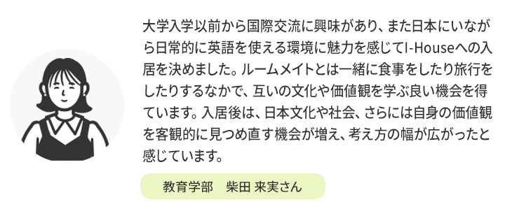 世界中から集まる留学生と日本人学生が共に生活し、