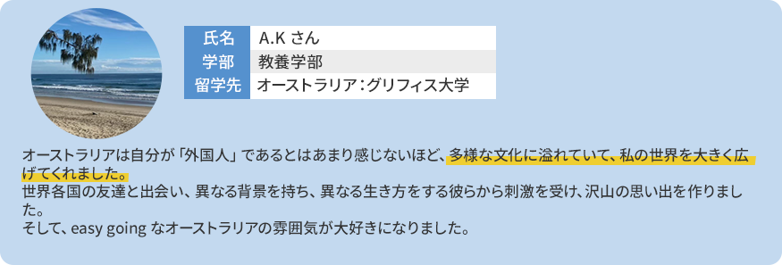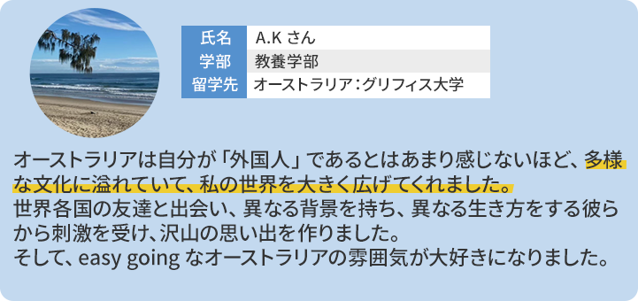 - ・グリフィス大学(オーストラリア):約4週間(2~3月)