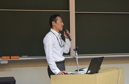 最後に、同交通安全担当の小林氏から、昨年、今年と大学生の死亡事故が多発していることの報告や、特に自転車通学が多い本学の学生向けに、主に自転車利用の際に守るべき交通ルールやマナーなどについて詳しい説明がありました。