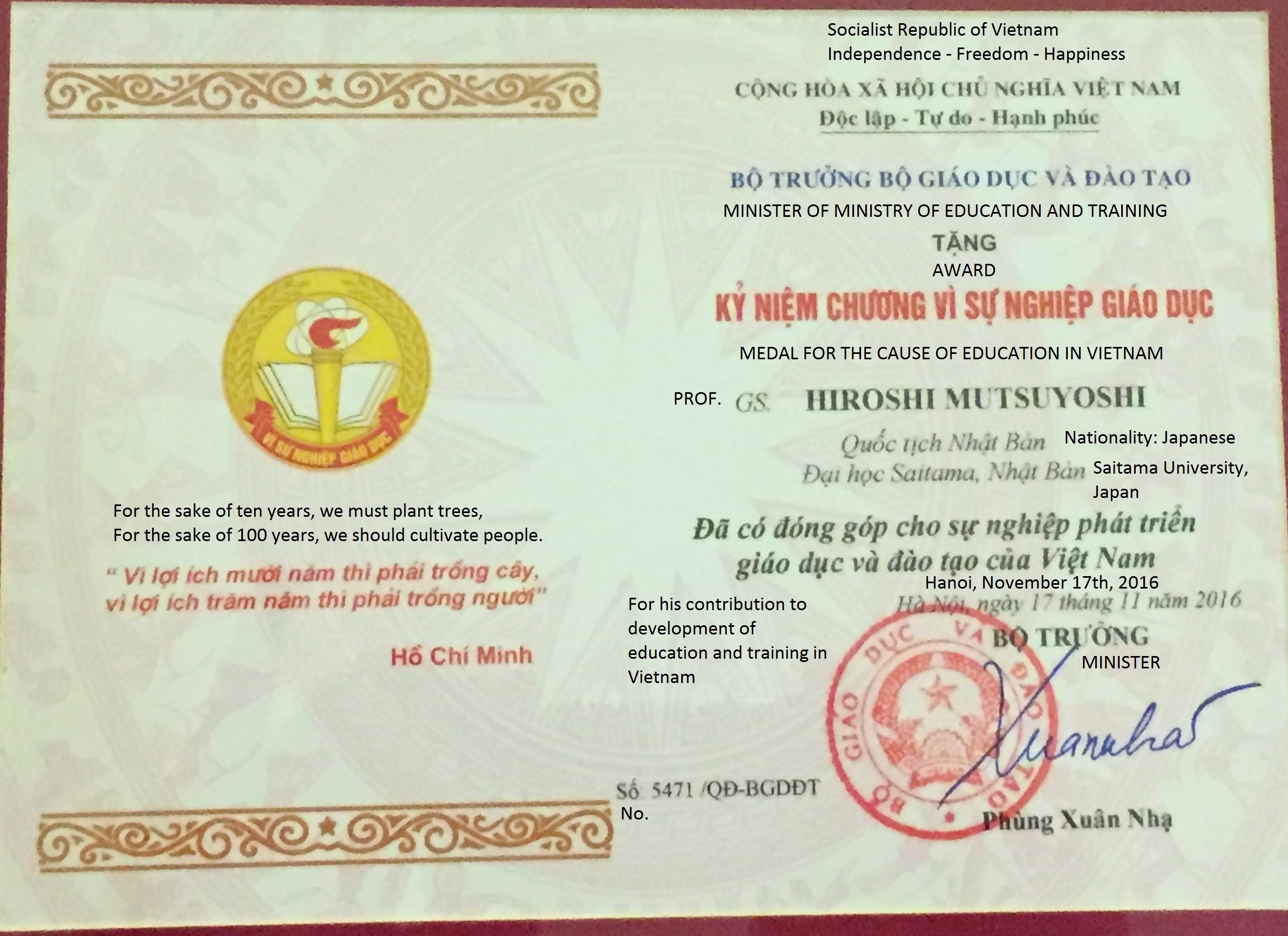 大学院理工学研究科 睦好宏史教授がベトナム教育省より表彰されました