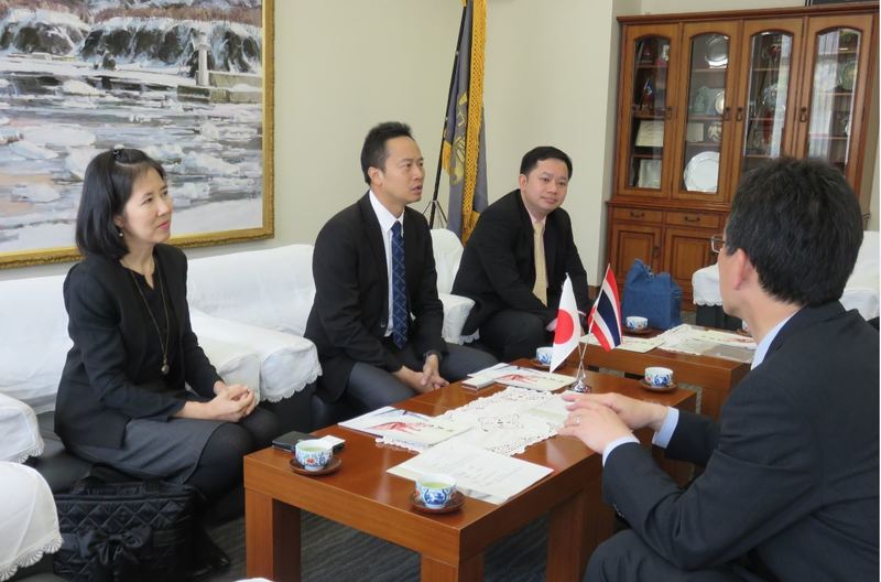 Prior to the courtesy call, the delegates visited Prof. Hideki Kurokawa, Dean of Faculty of Engineering. The participants shared current situation of the Eastern Economic Corridor (EEC) Development Plan of Thailand and discussed potential collaboration in the engineering field.