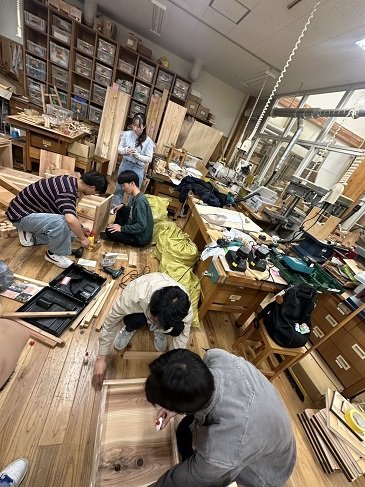 埼玉大学では、教育学部生活創造専修技術分野・ものづくりと情報分野の学生が設計、製作を担当することになり、木材研究室(浅田茂裕教授担当)に所属する4年生、武藤吏玖さん、西村萌さんを中心に製作活動が進められました。