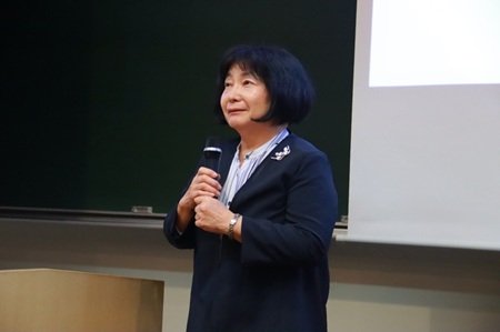 最後に、埼玉県立大学の林裕栄学長より閉会の挨拶を行いました。 林学長は、埼玉大学と埼玉県立大学は学科構成が重ならず、学際的研究を進めるうえで理想的な関係にあると述べました 。発表を通じて、理工学・医療・教育といった多様な分野が融合し、高齢社会を含む人々の生活に貢献する有意義な研究が進展していることに強い期待を寄せられました。また、生命の起源を探る研究や子どもたちへの科学教育など、未来への希望を感じる取り組みが多くあったと振り返り、今後は教育分野でも連携をさらに深め、両大学の協働が一層発展することを期待して挨拶を結ばれました。