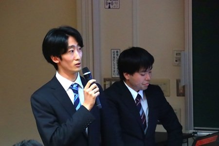 経済学部 大津唯准教授ゼミでは、男性の育休取得率が上昇しているものの、1週間~2か月程度と短期間の取得に留まっている現状に着目し、①育休取得の推進、②復帰後の支援の重要性を伝えました。具体的な取り組みとして、難解な育休取得手続きをサポートするチェックシートの作成・公開や、育休中の代替人材確保を目指した企業間マッチングの仕組み構築が提案されました。
