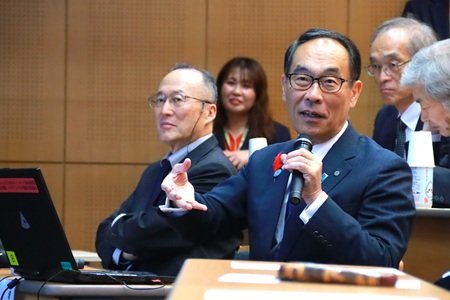 大野知事による全体講評では「既存事業と異なる切り口の提案、埼玉県のポテンシャルを高める提案は、非常に興味深く、一部は具体的な採用も検討できるものだった。埼玉県には、たくさんのコンテンツがあり、魅力のある県だと思っているが、学生の皆さんからお知恵をいただいたおかげで、ワンステップもツーステップも、その魅力を高めることができるという可能性を改めて感じることができた。2040年、2050年にも「住んでよかった」「働いてよかった」と思える持続可能な埼玉県を目指したい」と熱く語られるとともに、発表した学生および指導教員への感謝が述べられました。大野知事と学生との記念撮影も行われ、盛会のうちに終了しました。
