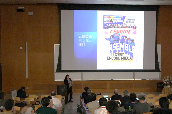 特別講演では、埼玉大学在学中にバルセロナ五輪柔道競技で銀メダルを獲得し、フランスのオリンピック代表柔道チームのコーチ等として活躍された溝口教授の貴重なお話に、参加者が熱心に聞き入っていました。