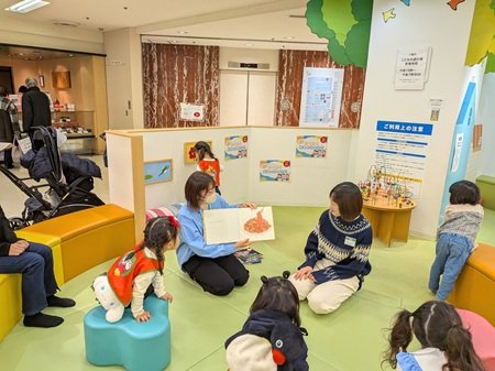 ワークショップでは、身近な材料を使ったクリスマスリース作りを企画し、たくさんの家族連れの方々に参加いただきました。絵本の読み聞かせでは、担当する学生それぞれが絵本を選び、優しく子供たちに語りかけました。イベントの案内をアナウンスする店内放送にも学生自らが挑戦し、店内は終始賑やかな雰囲気に包まれました。