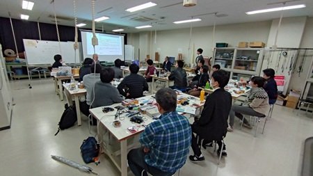 12月21日(日) 、本学実習工場内の実験室において、現役の高等学校の理科(主に物理)の先生16名を対象としたワークショップ「ソーラー&無線給電のミニ四駆を作ろう!」が、日本物理教育学会・次世代形成ワーキンググループと、その依頼を受けた本学研究機構社会変革研究センター脱炭素推進部門との共催で行われました。