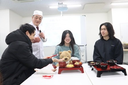 1月15日(木)の講義では、川口市にある日本料理店「賀茂川」店長 長谷川裕志氏をお招きし、「和食(日本食)とは?」と題した講義を行いました。