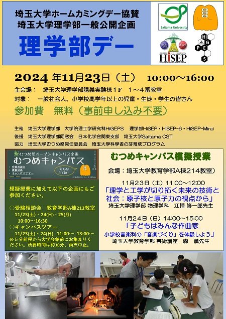 卒業生の方は、学生当時を思い出して同窓生や先輩・後輩、また、恩師との旧交をあたためていただき、在学生の方には、卒業生との交流を通じて様々なお話を聞く機会として、大学のお近くにお住まいの方々には、埼玉大学のことをより広く知っていただく日となります。