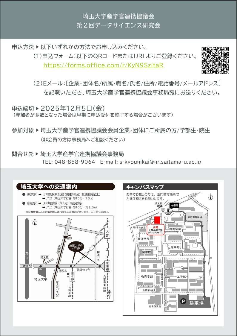 【12月12日(金)】[埼玉大学産学官連携協議会] 第2回 データサイエンス研究会開催のご案内