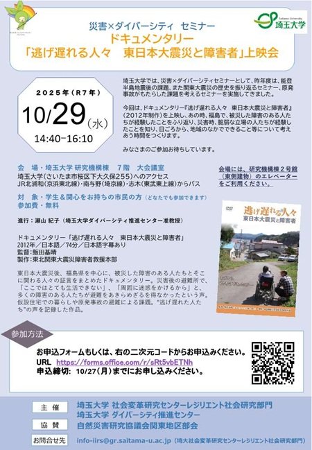 【10月29日(水)】災害×ダイバーシティセミナー ドキュメンタリー「逃げ遅れる人々 東日本大震災と障害者」上映会