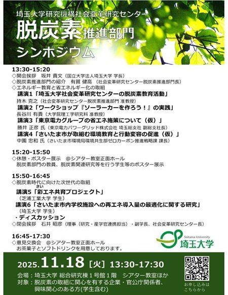 【11月18日(火)】埼玉大学研究機構 社会変革研究センター脱炭素推進部門シンポジウム開催のご案内