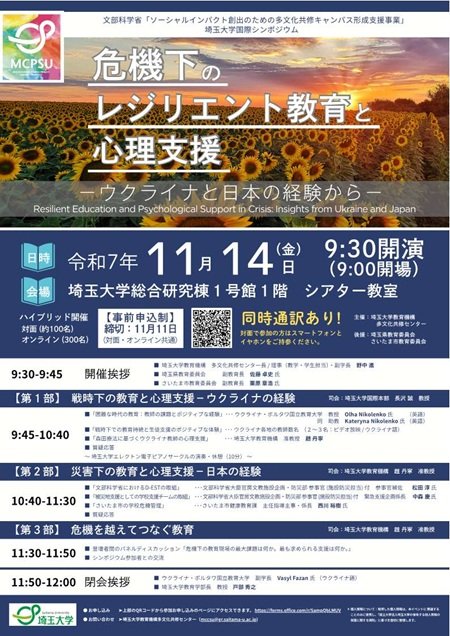 【11月14日(金)】国際シンポジウム【危機下のレジリエント教育と心理支援ーウクライナと日本の経験からー】のご案内