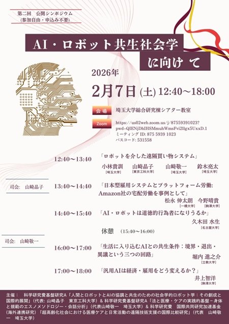 【2月7日(土)】第2回 公開シンポジウム「AI・ロボット共生社会学に向けて」を開催します
