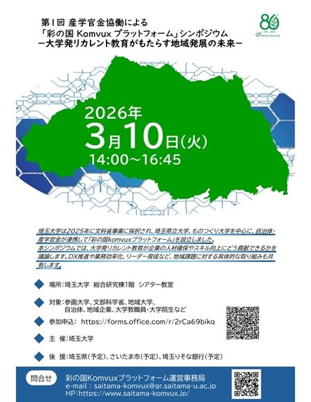 【3月10日(火)】第1回産学官金協働による「彩の国Komvuxプラットフォーム」シンポジウム-大学発リカレント教育がもたらす地域発展の未来-開催のご案内