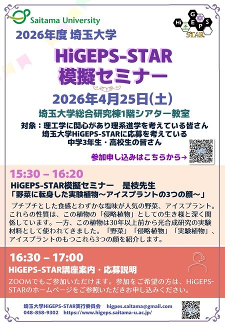 【4月25日(土)】埼玉大学HiGEPS-STAR 模擬セミナー開催のお知らせ