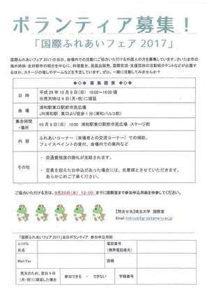 【国際ふれあいフェア2017~外国人留学生のボランティア募集中~】