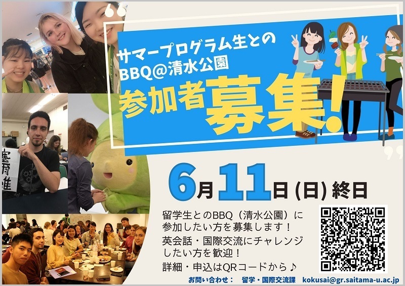 【4月28日(金)締切】サマープログラム生と交流しよう!清水公園BBQ参加者募集