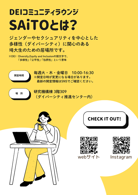 | お問い合わせ | DEIコミュニティラウンジSAiTO E-Mail:diversity-lounge@gr.saitama-u.ac.jp |
