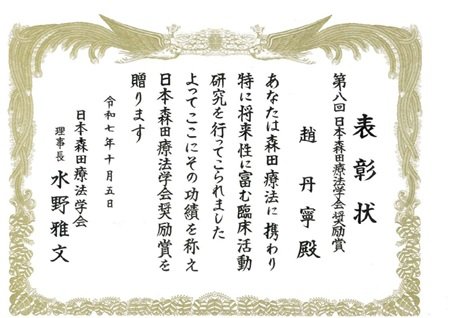 日本森田療法学会の第8回学会奨励賞を受賞、表彰式で講演(教育機構多文化共修センター 趙丹寧准教授)