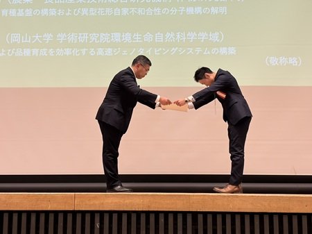 日本育種学会奨励賞を受賞、授賞式に出席(大学院理工学研究科 竹島亮馬助教)